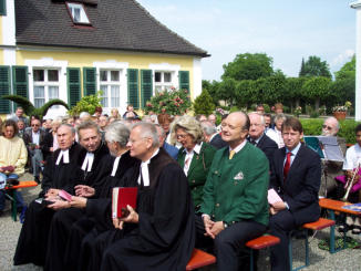 Gartenpavillon. Hier und während der anschließenden Schlussfeier des Gottesdienstes funktionierte es schon ganz gut.