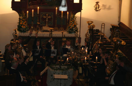 Die Bläser unterhielten die zahlreich erschienene Gemeinde mit einem Reigen von Bläserstücken und Volksliedern. Auch die Jungbläserstaffel II unter der Leitung von Harald